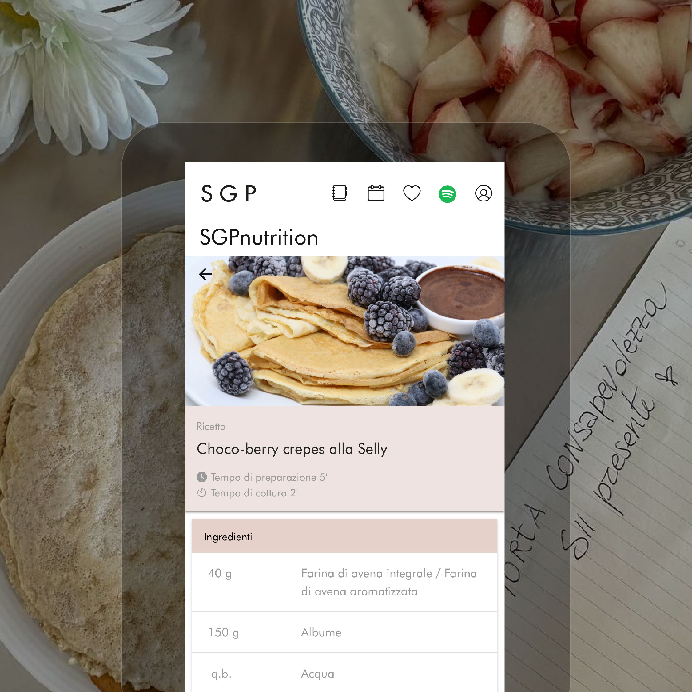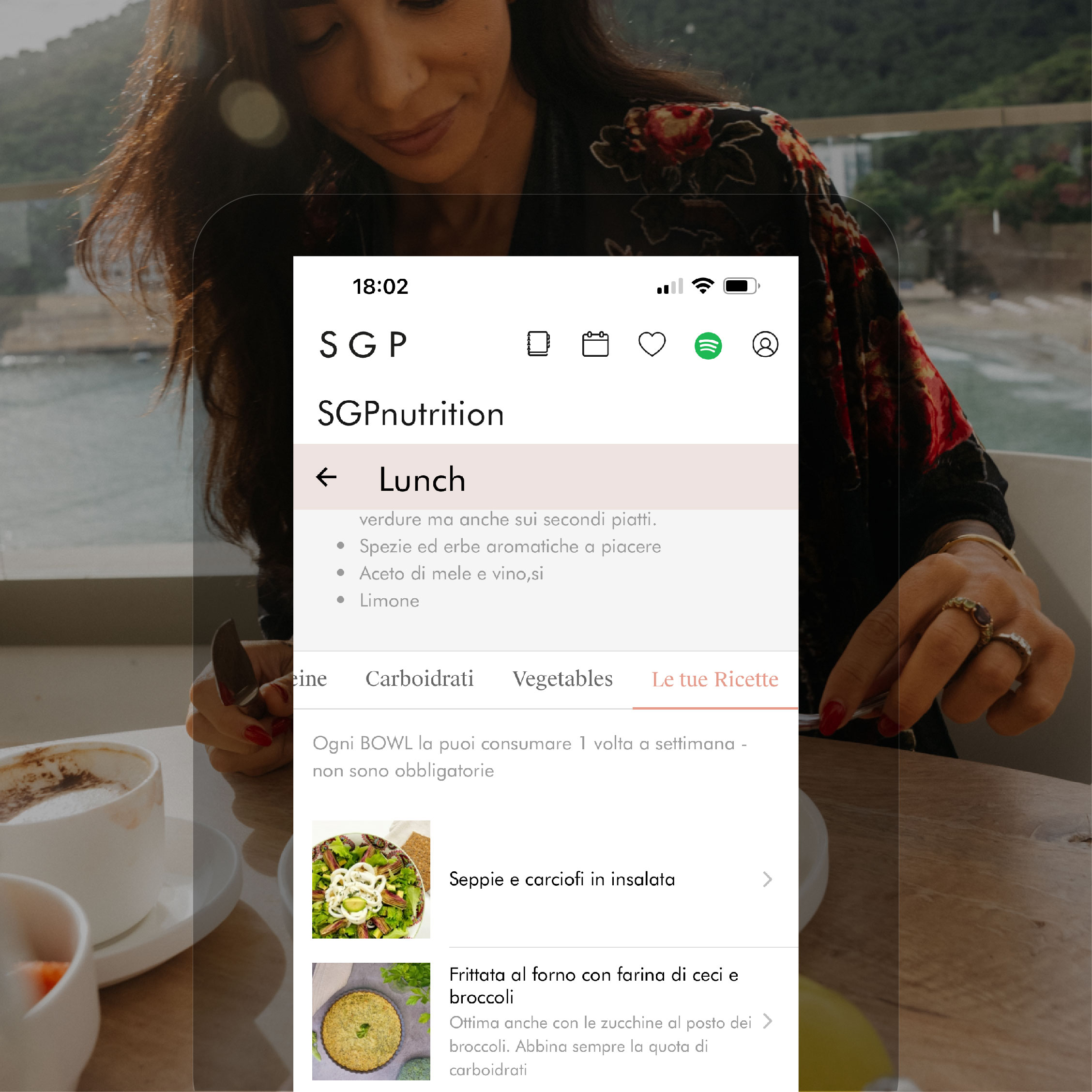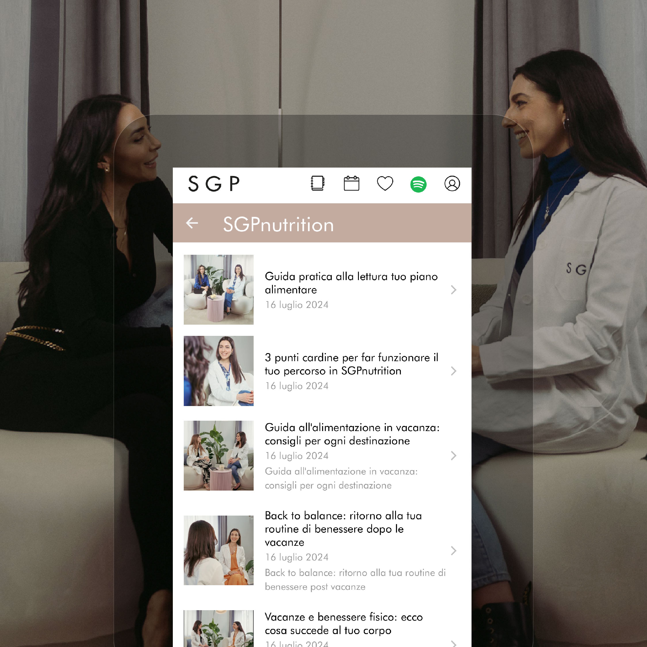 SGPnutrition è un percorso alimentare completamente personalizzato: verrai seguita da una biologa nutrizionista del mio Team. La tua nutrizionista non ti darà una dieta da seguire alla lettera: insieme farete un percorso mirato a raggiungere il tuo obiettivo e a fornirti un’educazione alimentare che entri a far parte del tuo bagaglio personale. Con SGPnutrition adotterai delle abitudini sane, che ti porteranno a diventare autonoma nelle tue scelte, ovunque tu sia.