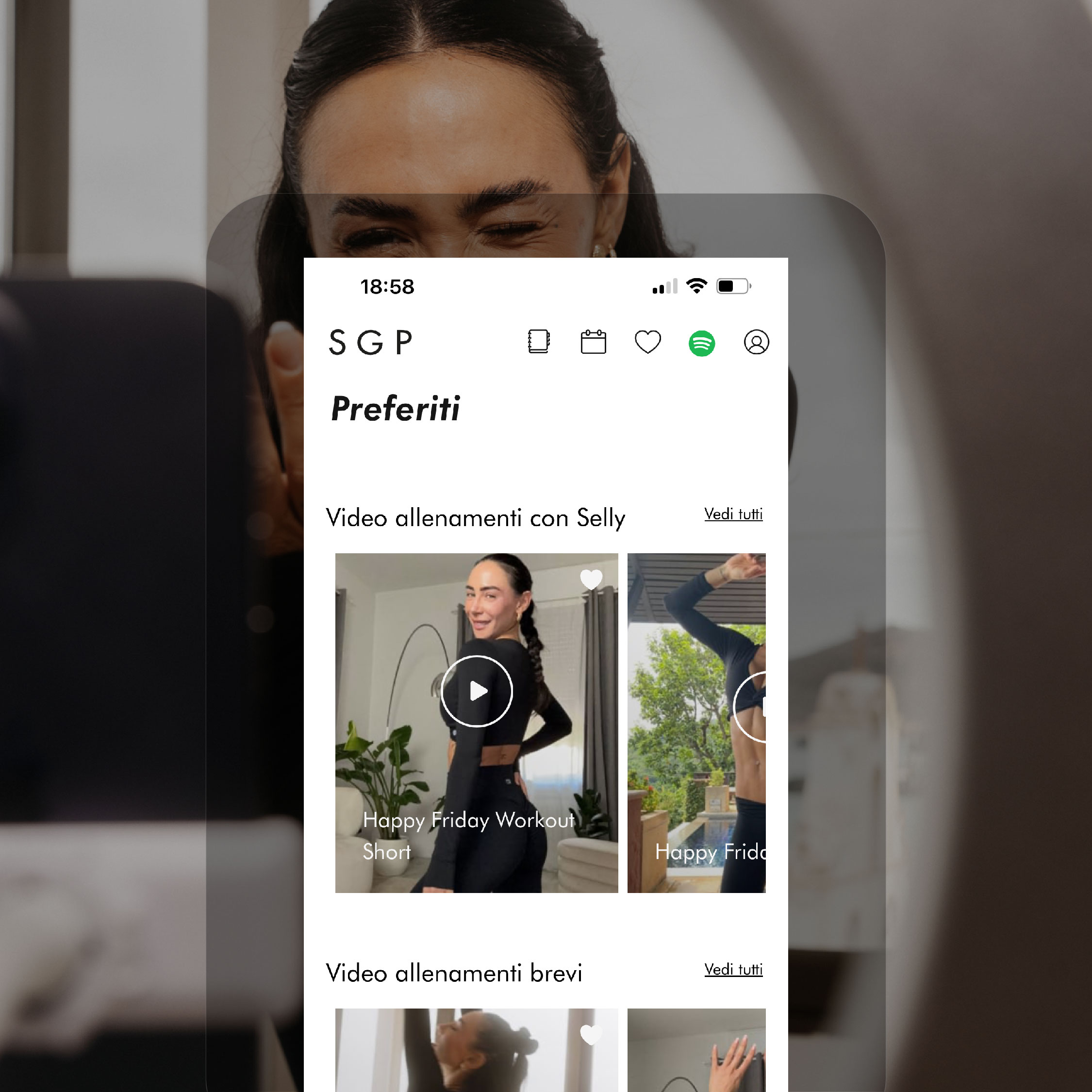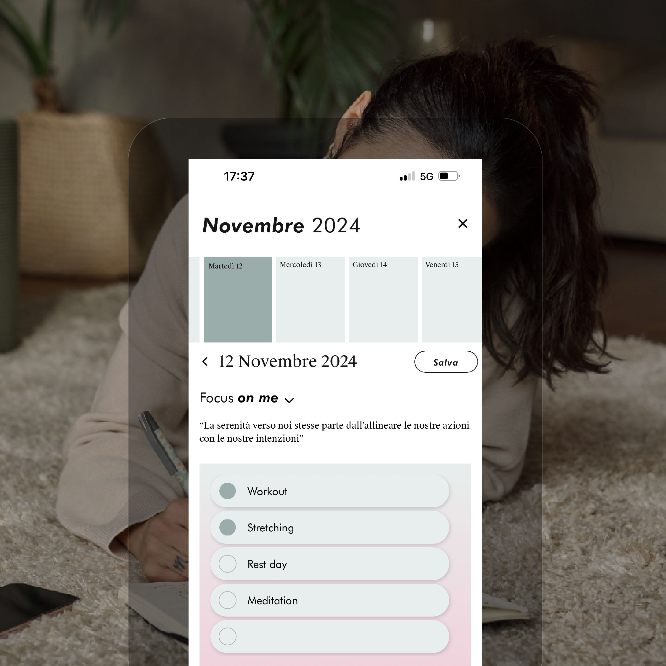 In questa sezione potrai programmare le tue sessioni di allenamento, stretching, meditazione e rimanere sempre aggiornata sui nuovi contenuti disponibili nella tua App.